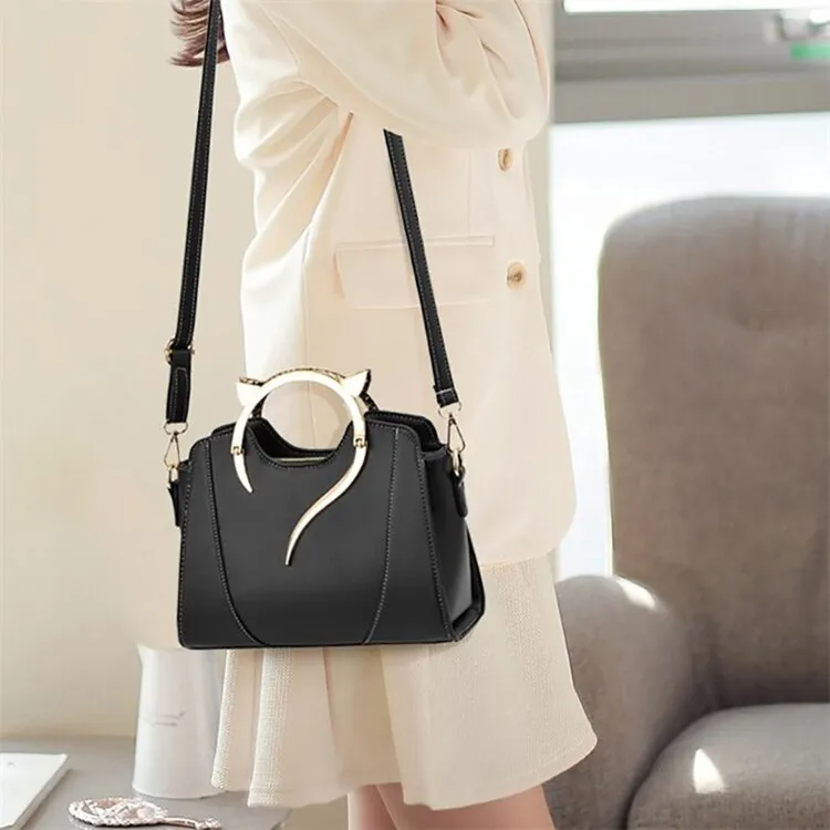 Bolsa Feminina - Design de Gatinho Elegante em Couro PU.