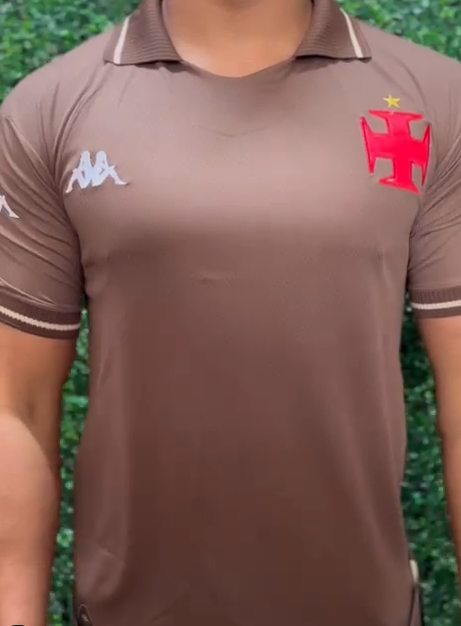 No lado esquerdo do peito fica o escudo do Vasco da Gama, que possui o desenho de uma caravela, símbolo das grandes navegações portuguesas e referência ao navegador Vasco da Gama, que dá nome ao clube.